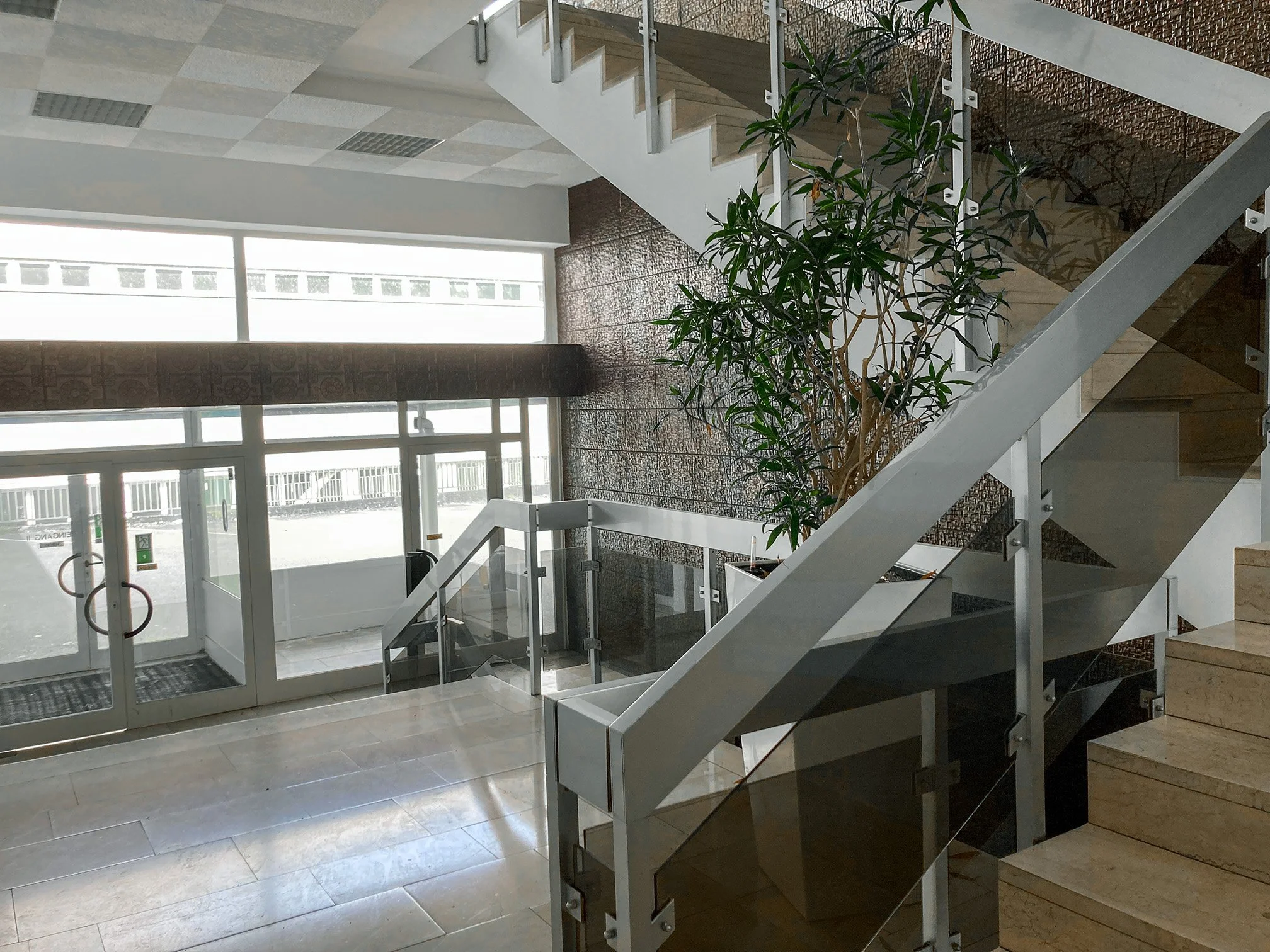 Das Gebäude 2 verfügt über einen repräsentativen Eingangsbereich, der Ihre Besucher sofort willkommen heißt. Ein großzügiges Treppenhaus verbindet alle Etagen und sorgt für einen bequemen Zugang.